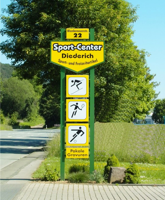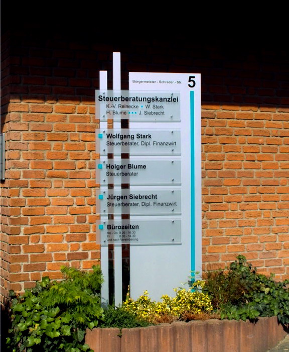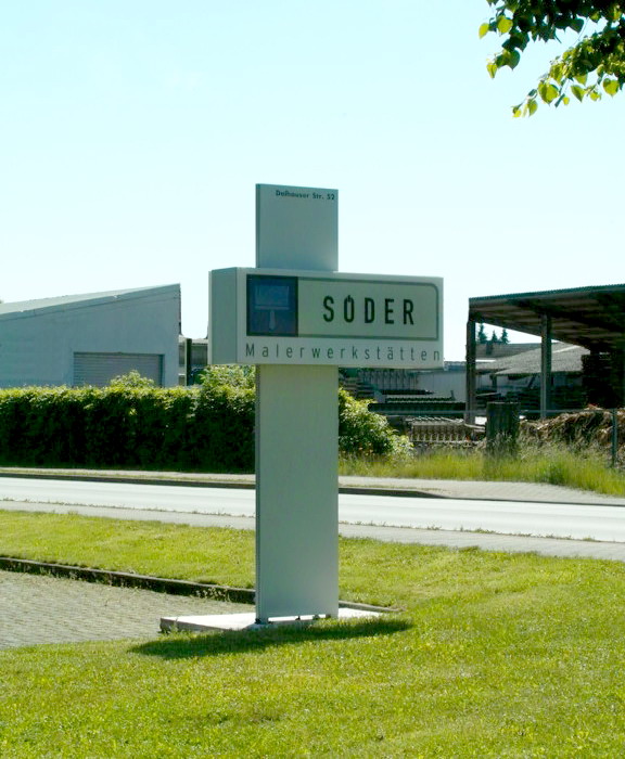 Der Pylon ist ein modernes, stilvolles Sign um gekonnt Präsenz zu zeigen.