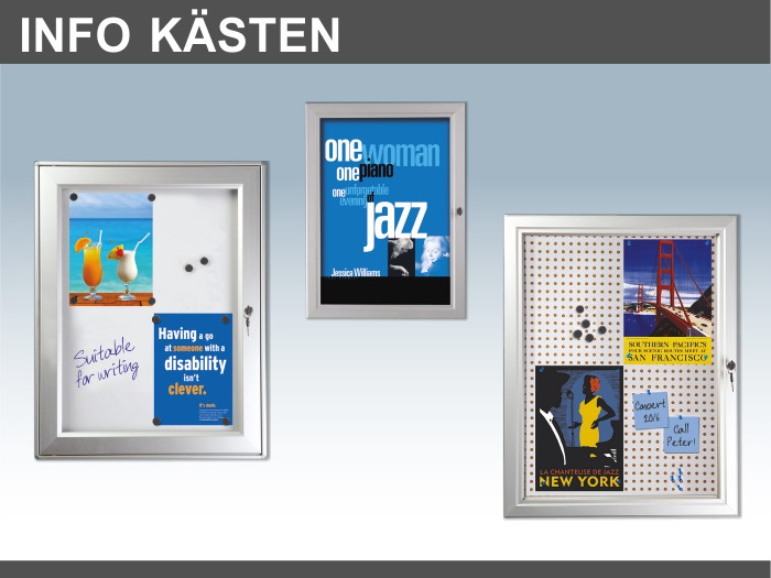 Hier zeigen wir Ihnen einige Verkaufssysteme zur Präsentation, wie z. B. für Einzelhandel, Messen, Hotels, Gaststätten oder Flughäfen. Die Darstellungen zeigen nur einen Auszug der Möglichkeiten. Wir beraten Sie gerne.